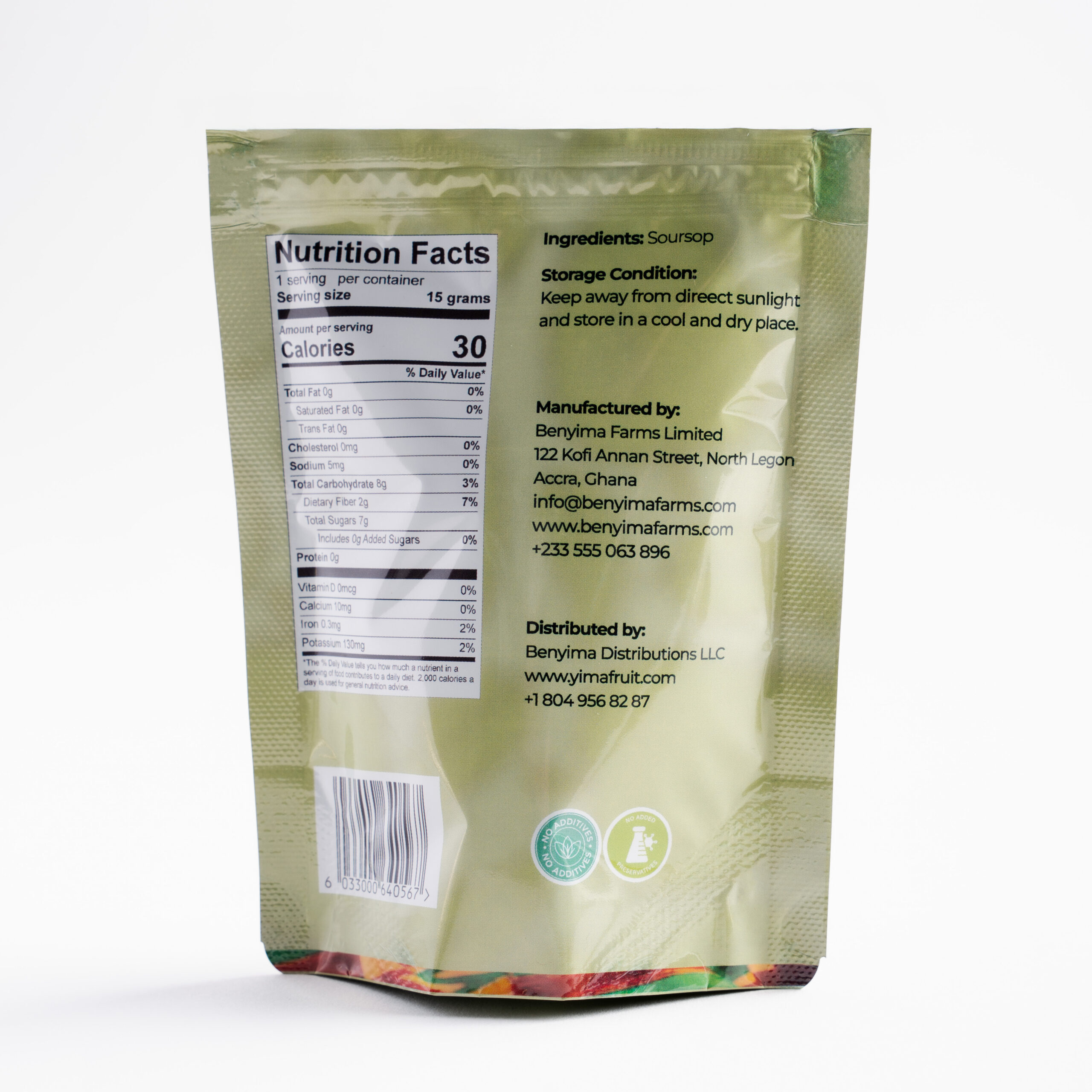 Freeze-dried soursop made with fruits from Benyima Farms, a family owned farm nestled on a Coastal Savannah in the Central Region of Ghana.